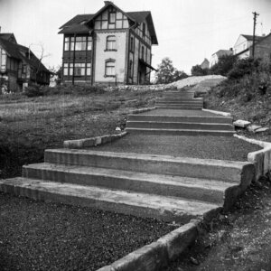 Stavění schodů mezi ul. Na nivách a Kekulova, brigáda, červen 19591959